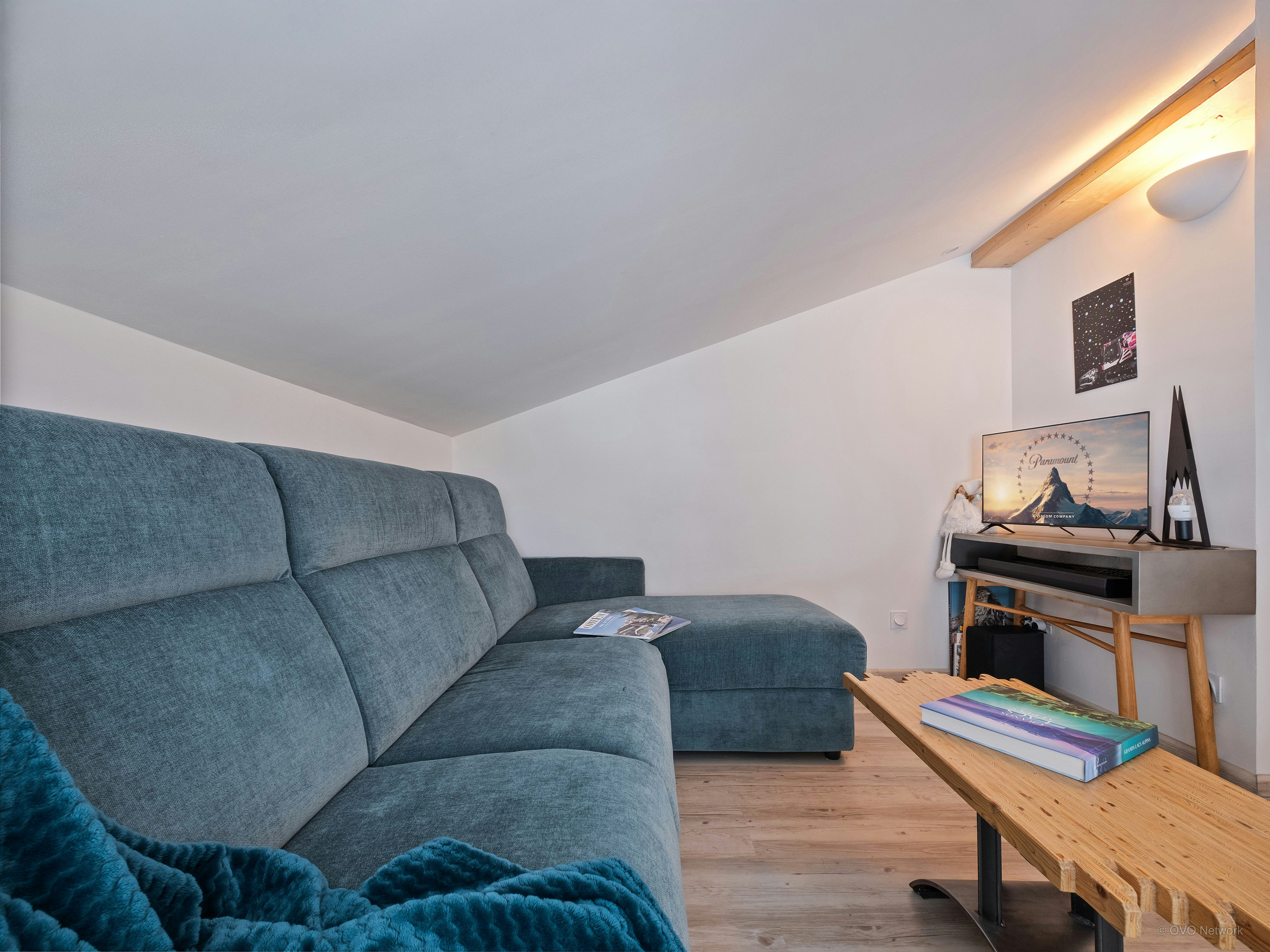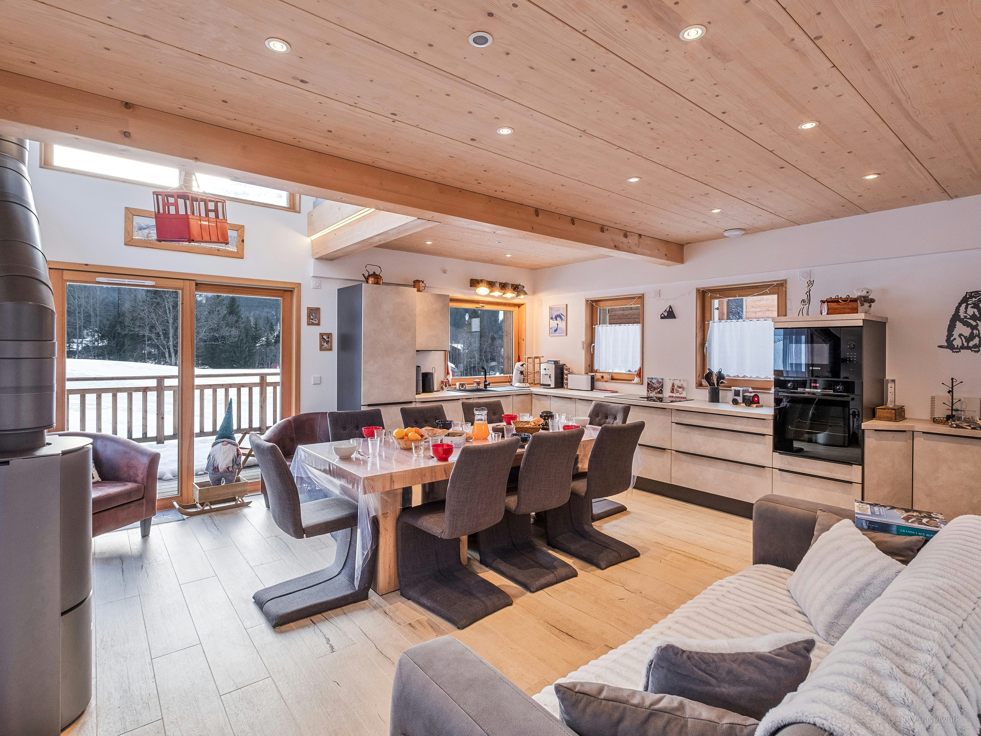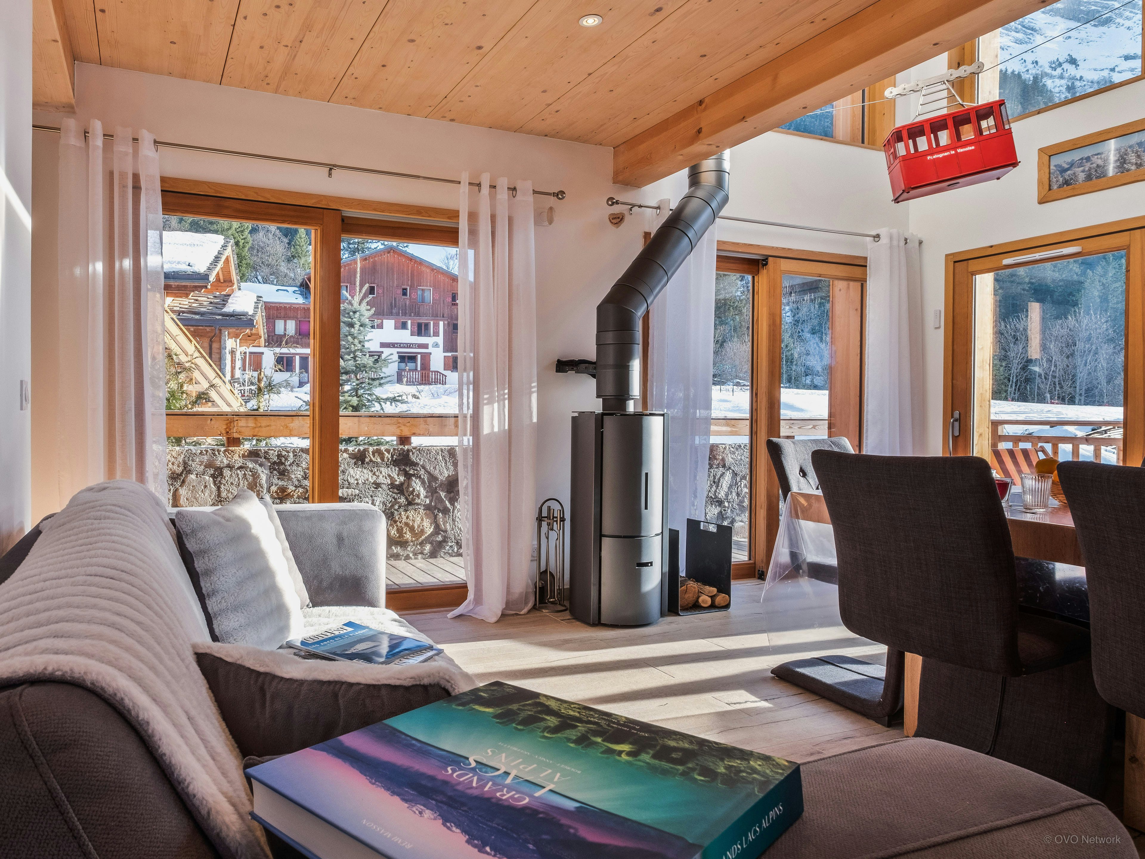 With two sitting rooms and a sunny terrace, Chalet Arpitan Orizon offers a choice of welcoming spaces for a group of up to eight guests, including six adults.
