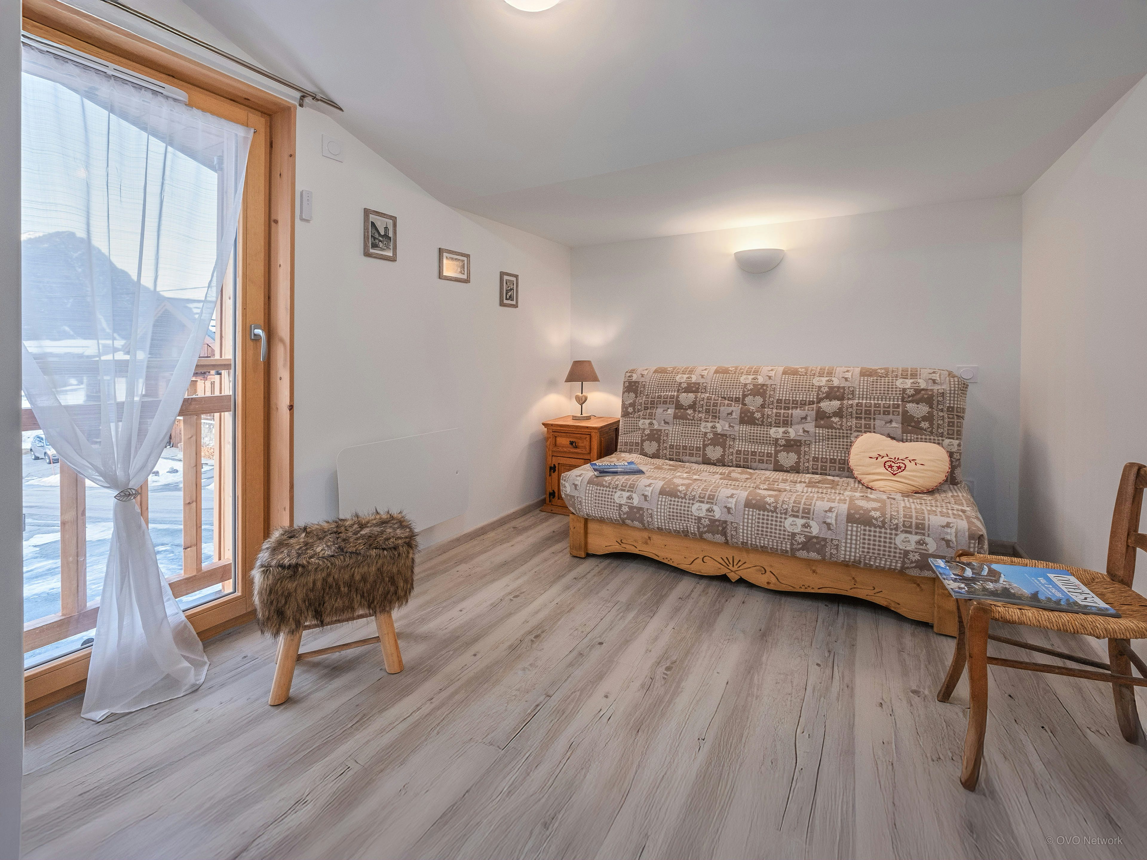 Chalet Arpitan Orizon is a semi-detached chalet for eight guests (including six adults), with accommodation over three floors. It has four bedrooms and two bathrooms.